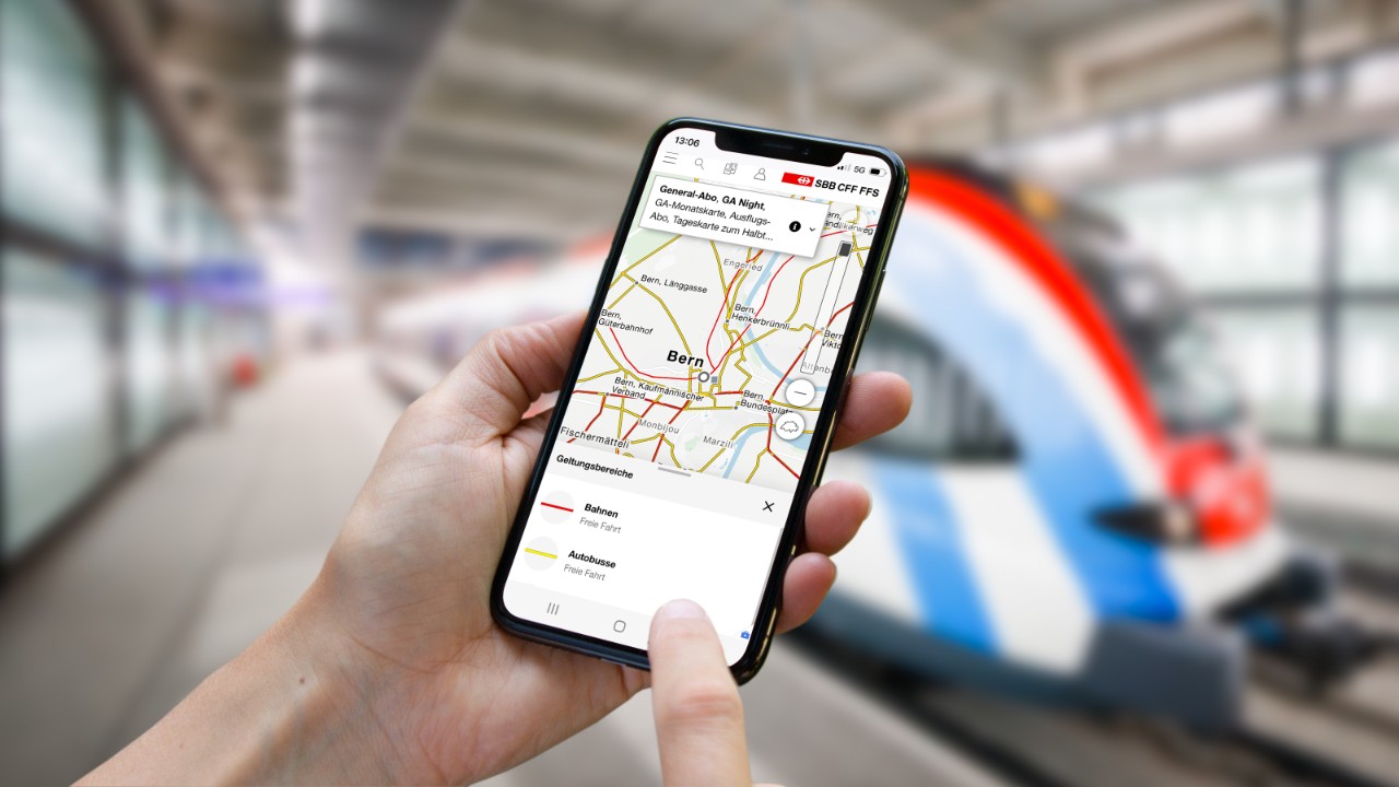 Auf der interaktiven Geltungsbereichskarte können Sie einfach und bequem herausfinden, wo Ihr GA, Ihr Halbtax, das GA Night und weitere Fahrausweise gültig sind. Tipp: Zoomen Sie die interaktive Karte auf die gewünschte Grösse. Dadurch wird auch der Geltungsbereich bei kleineren Transportunternehmen sichtbar.