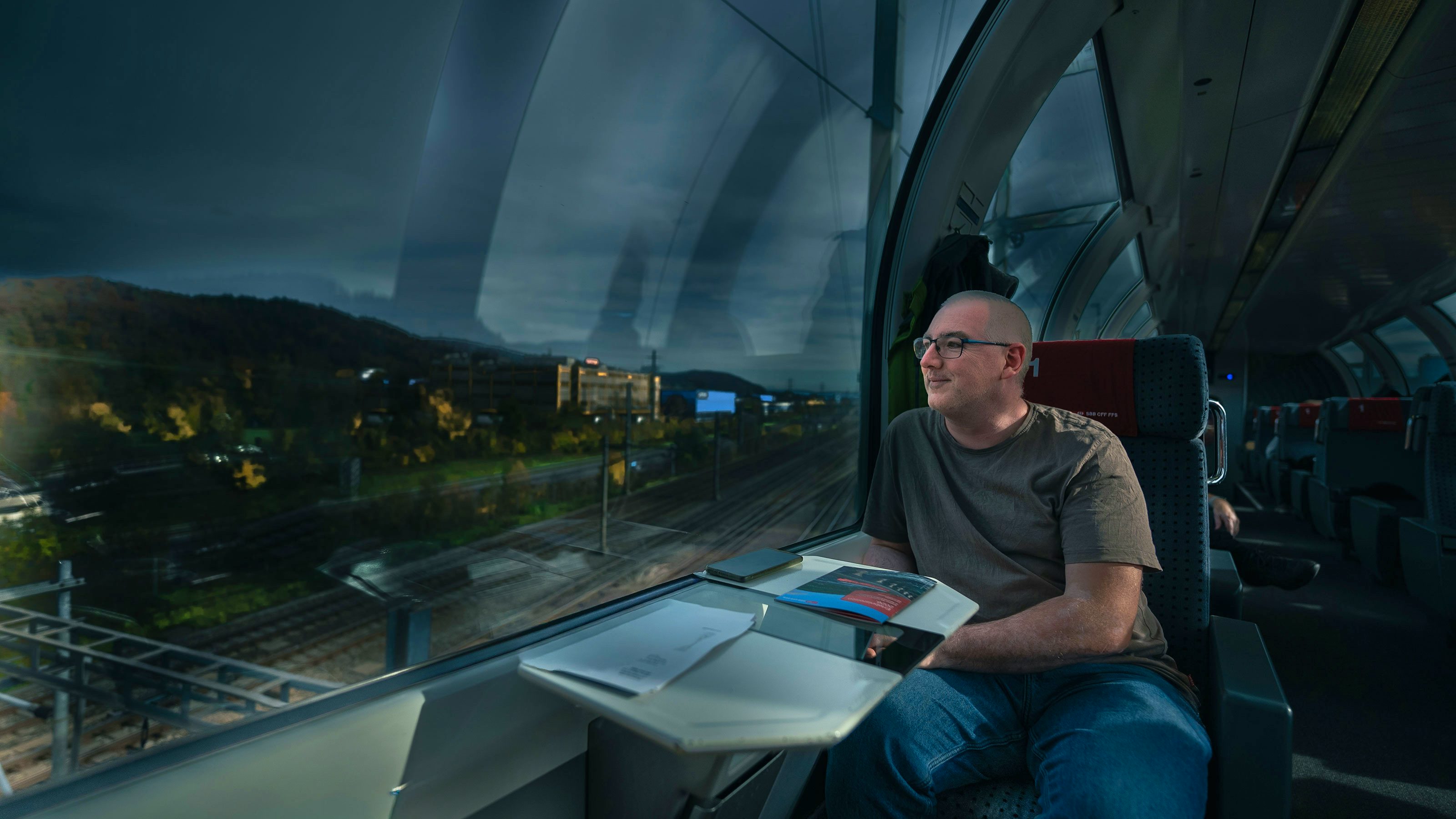 - Eindrückliches Nachtfahrt-Erlebnis in Panoramawagen mit reduzierter Beleuchtung.