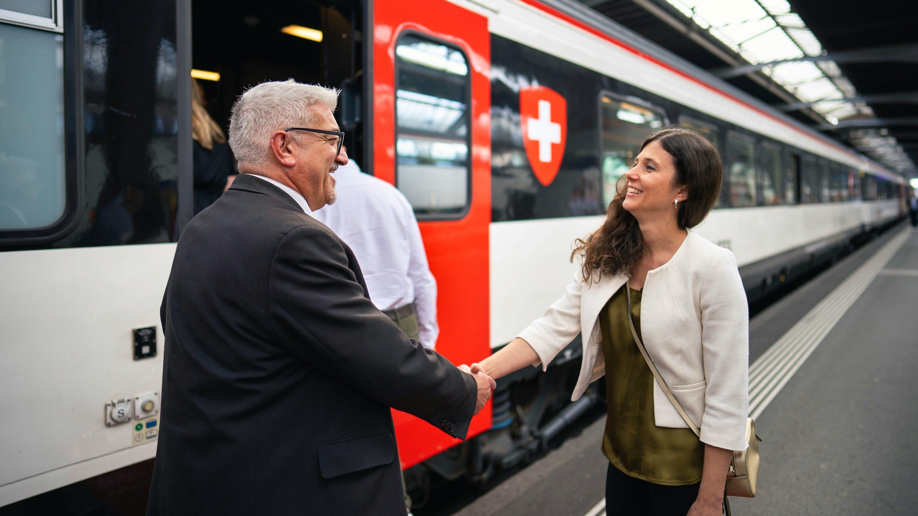 «An sechs Tagen hiessen wir unsere Mitarbeitenden in verschiedenen Schweizer Städten im stilvollen «Salon suisse» willkommen. Die Zusammenarbeit mit der SBB war für uns in jeder Hinsicht ein voller Erfolg! Besonders geschätzt haben wir die Flexibilität und das grosse Engagement des Teams. – Franklin Schatzmann, Vorsitzender der Geschäftsleitung, Dr. Bähler Dropa AG.