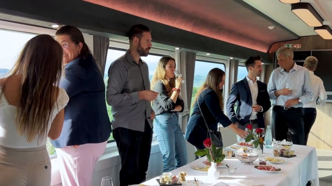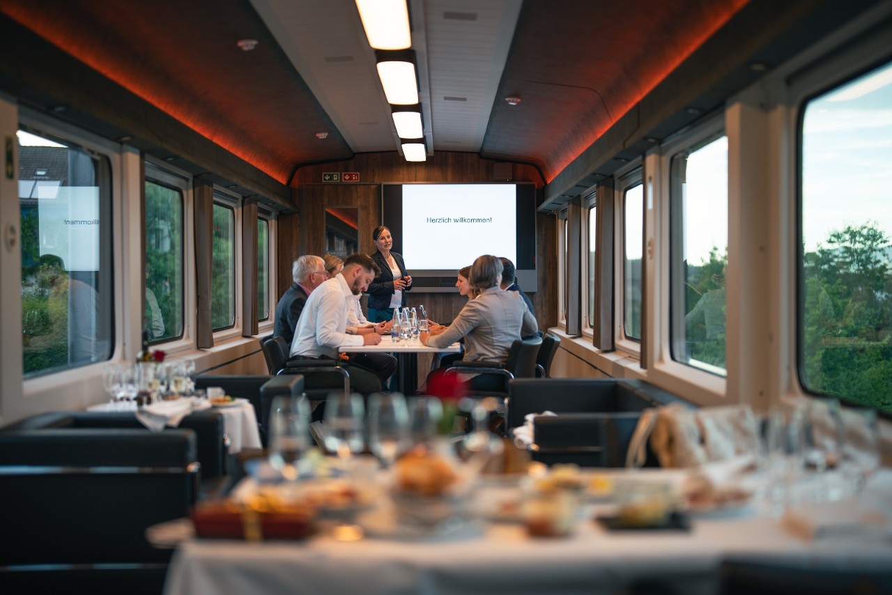 «Sehr praktisch für eine lange Anreise, die Zeit kann mit so einem Extrazug optimal genutzt werden. Wir hatten ein super Mittagessen und unsere Gäste haben die exklusive Fahrt in vollen Zügen genossen. Unsere Ansprechperson der SBB hat im Vorfeld eine sehr gute Beratung und Betreuung übernommen und uns für die ganze Reise unterstützt. Auch die Ansprechperson im Zug war sehr zuvorkommend und hat alle unsere spontanen Wünsche erfüllt.» – Weleda AG.