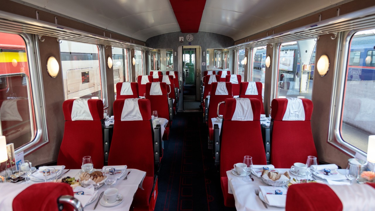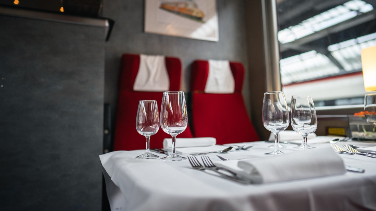 With its tables for four, the “Churchill” Red Arrow offers space for up to 96 guests. And with the built-in kitchen and spacious bar, the railway catering company Elvetino AG will make your culinary wishes come true.