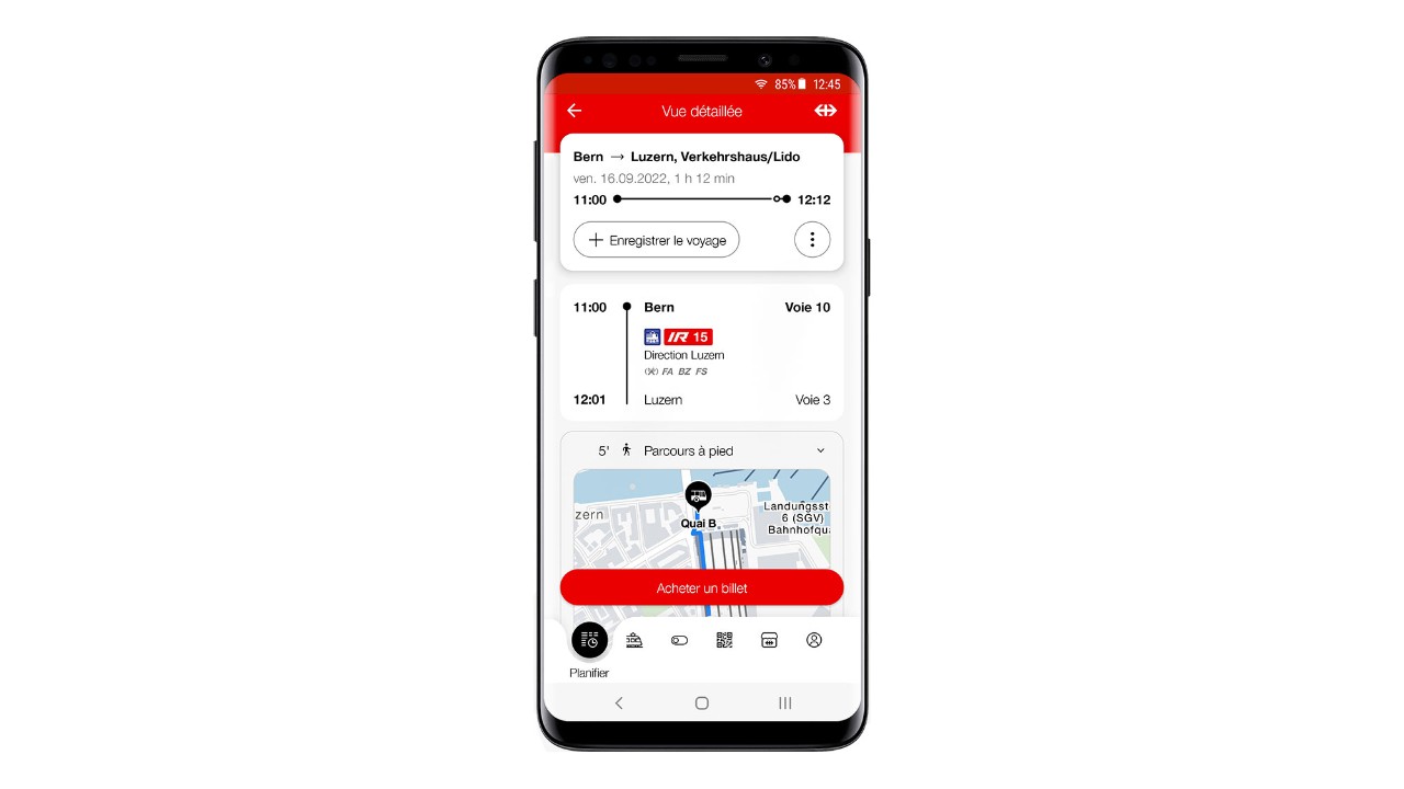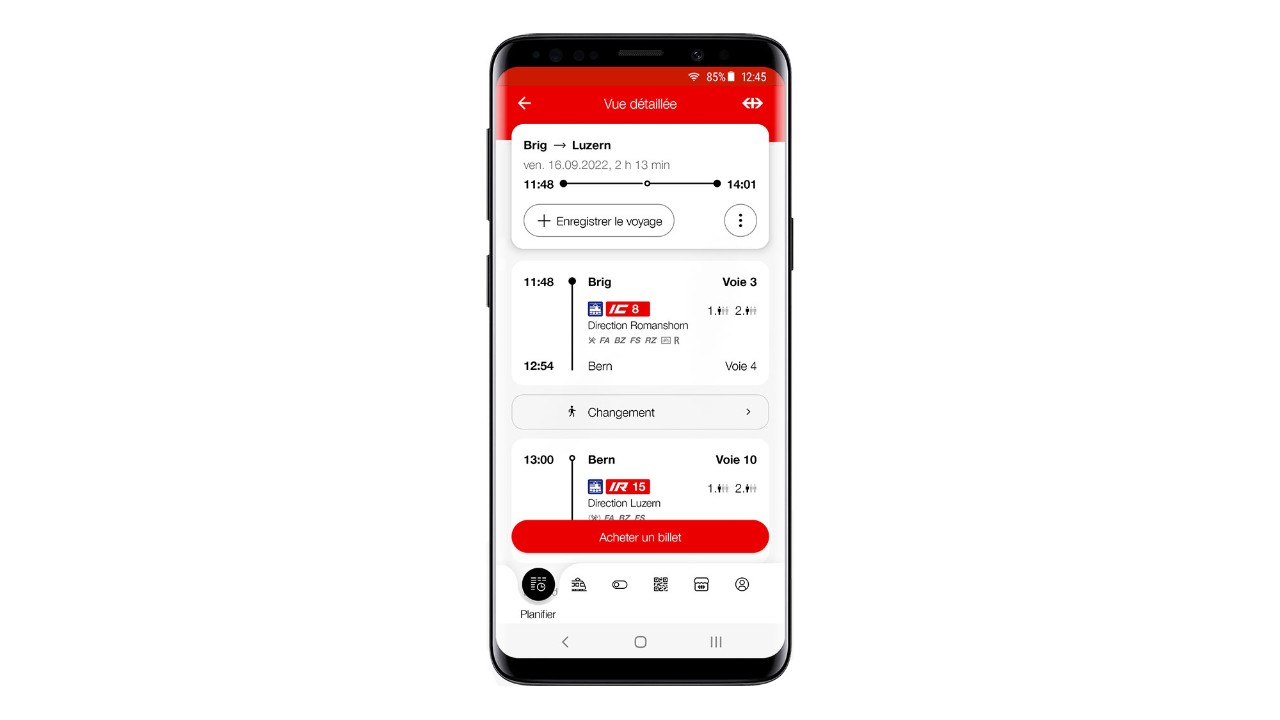 Pendant le changement, l’appli Mobile CFF et l’horaire en ligne sur CFF.ch fournissent les mêmes informations, seul l’affichage diffère un peu.