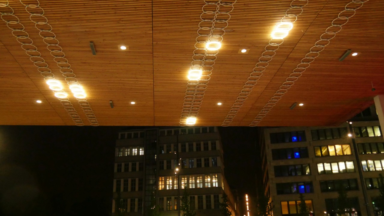 Loin du monument classique à l’effigie d’une personne de renom, le mémorial rend hommage à la personnalité et aux mérites de Hans Künzi par une habile abstraction de ses thèmes de prédilection: mathématiques, analyse des données et transport. 400 cercles lumineux d’un diamètre de 60 centimètres sont agencés dans une trame en forme de L sous la toiture de l’accès à la gare. Les néons qui bougent à différentes vitesses et dans différentes directions symbolisent le flux de circulation des passants à la gare centrale de Zurich.