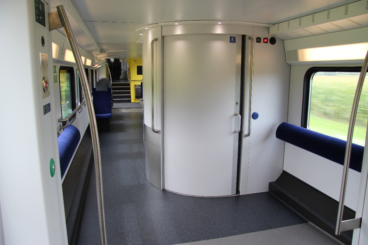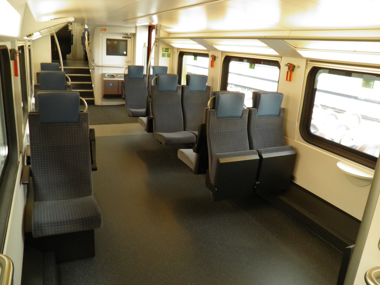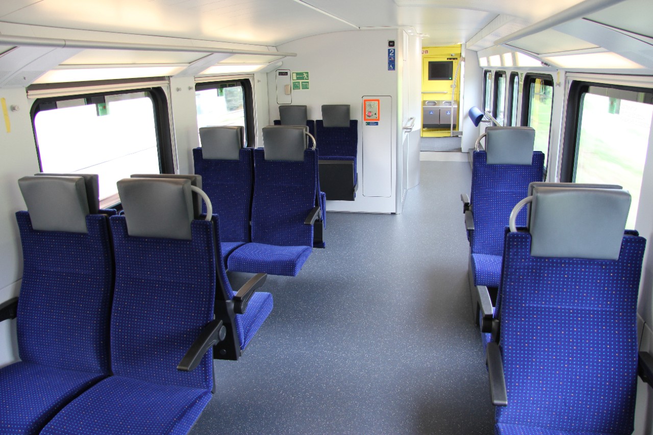 Les compositions de six voitures à deux niveaux disposent d’espaces intérieurs lumineux, bien agencés et climatisés. Elles comptent 120 places assises en 1re classe, 415 en 2e classe. Les larges portes situées au niveau bas du train facilitent la montée et la descente.
