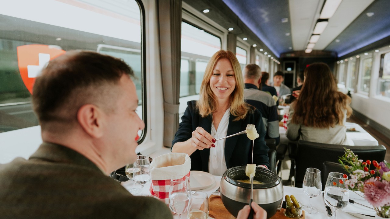 Voyage fondue à bord du Salon suisse exclusif.