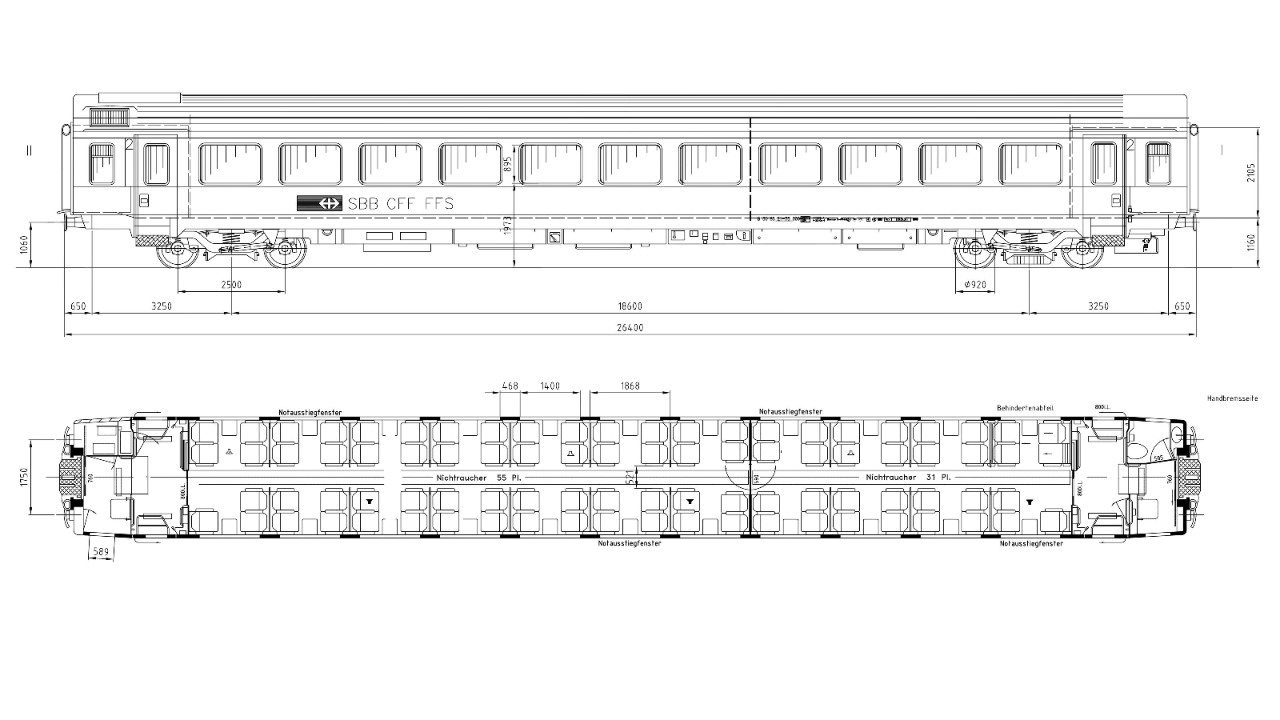 La nouvelle voiture de supporters dispose de 80 places assises, d’un système de WC en circuit fermé et d’au moins deux prises de courant par compartiment de quatre personnes. Elle est en outre équipée d’une climatisation.