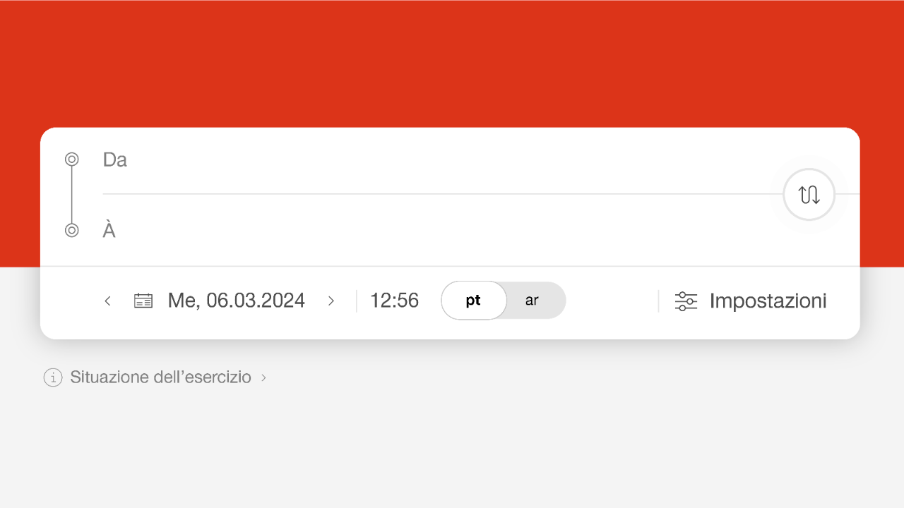 Per farlo, prima di consultare l’orario, fai clic su «Impostazioni» e scegli quanto tempo vuoi in più alla voce «Tempo di cambio più lungo»: circa il 50% di tempo in più, circa il doppio del tempo.