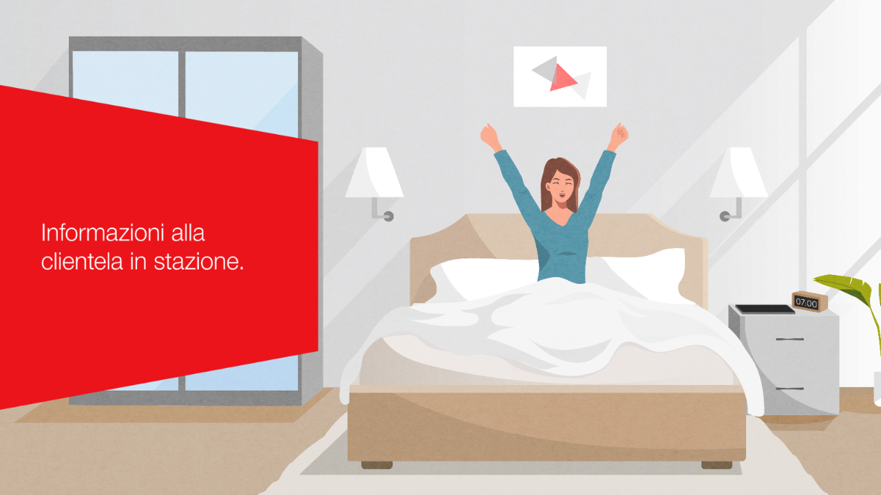 Vorresti sapere l’orario di partenza del treno successivo o in quale settore devi aspettare affinché la carrozza su cui devi salire si fermi proprio davanti a te? In stazione ti forniamo ogni tipo di informazione: indicazioni generali sulla stazione in cui ti trovi, dettagli sul tuo treno e annunci di perturbazione.